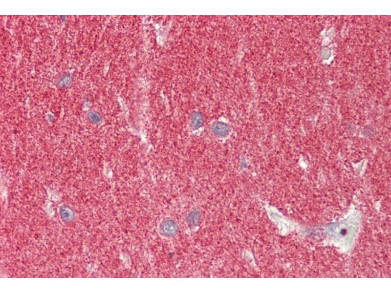 Immunohistochemistry: Paraffin embedded Human Brain (Cerebellum). Recommended concentration: 5 μg/mL.