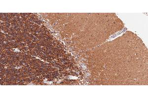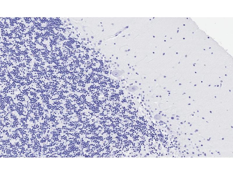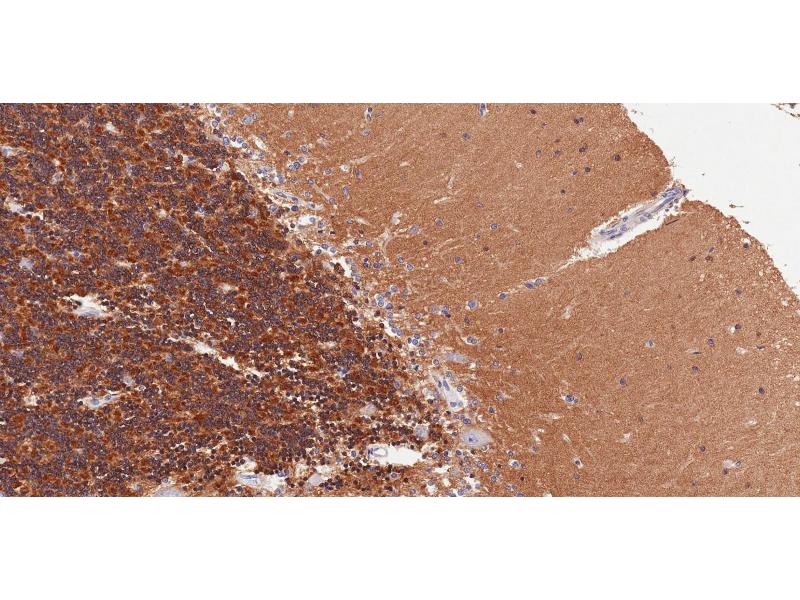 Immunohistochemistry: Paraffin embedded Human Brain (Cerebellum). Recommended concentration: 2 μg/mL.