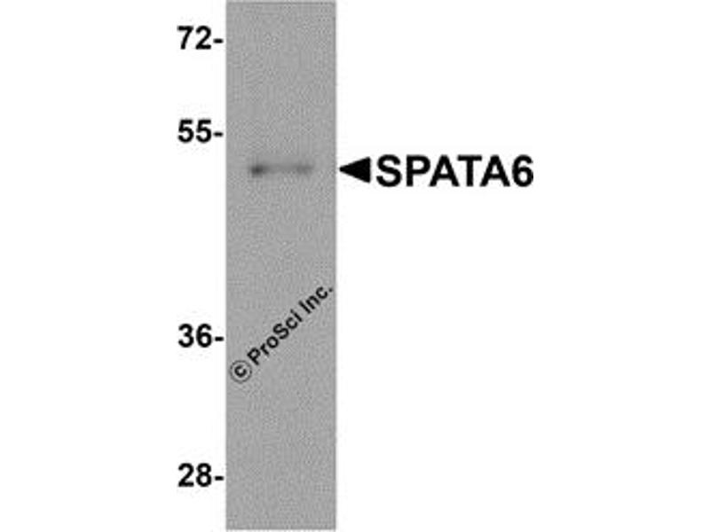 - SPATA6 antibody was raised against a AA 14 synthetic peptide near the carboxy terminus of human SPATA6.