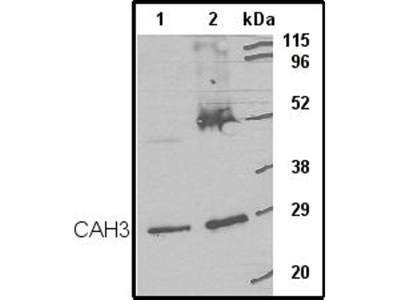 Background: CAH3 - carbonic anhydrase is a zinc-containing metalloenzyme that catalyzes the reversible interconversion of CO2 and HCO3?. It plays an important role in many physiological functions that involve decarboxylation or carboxylation reactions, including both photosynthesis and respiration.