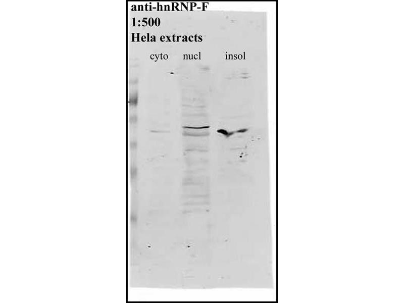 Heterogeneous nuclear ribonucleoprotein F antibody,hnRNP F antibody,hnRNP-F antibody,HNRNPFantibody,hnRP F antibody,hnRP-F antibody,hnRPF antibody,mcs94 1 antibody,MGC110997 antibody,Nucleolinlike protein antibody,Nucleolin like protein mcs94 1 antibody,OK/SW cl.23 antibody,Ribonucleoprotein Fantibody -