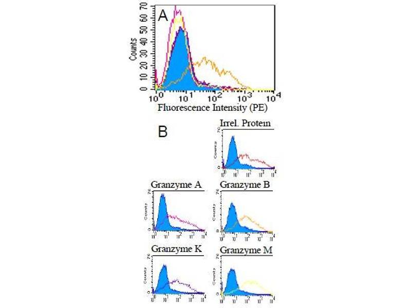 - Granzymes are exogenous serine proteases that are stored in the cytotoxic granules of activated T cells and NK cells. GM4C1 was generated by genetic immunisation and reacts with human granzyme B (GrB), a 27 kDa serine protease which cleaves target-cell proteins at specific aspartate residues.