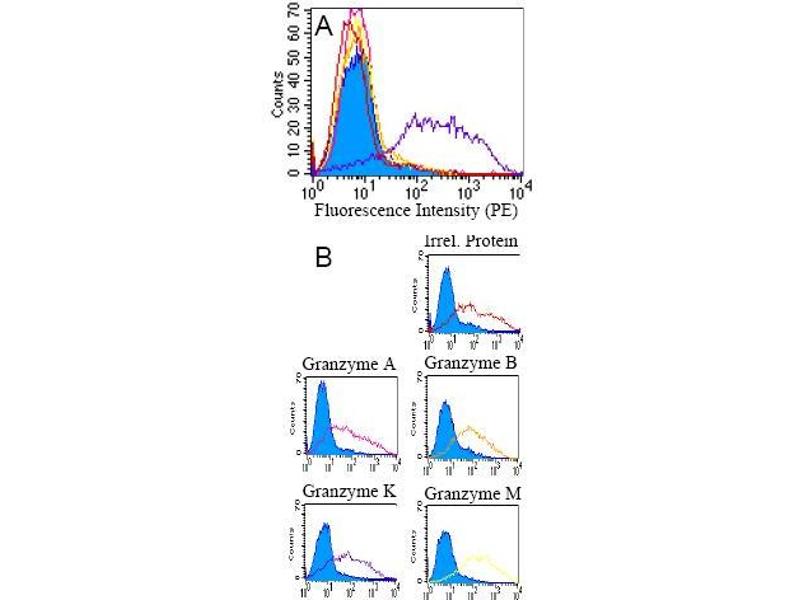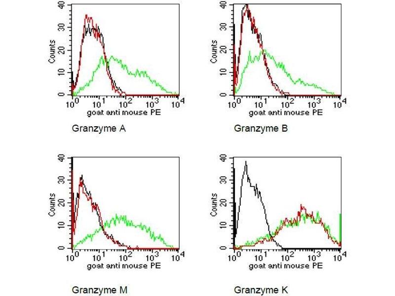 Granzymes are exogenous serine proteases that are stored in the cytotoxic granules of activated T cells and NK cells. GM24C3 was generated by genetic immunisation and reacts with human granzyme K (GrK), a 28 kDa serine protease with trypsin-like specificity.