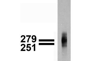 Immunoblotting: use at 1-2 μg/mL. A band of >200 kDa is detected. Immunohistochemistry: use at 1-10 μg/mL. These are recommended concentrations. User should determine optimal concentrations for their application. Positive control: Rat brain membranes.