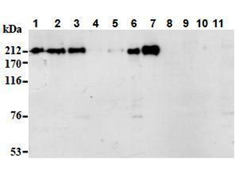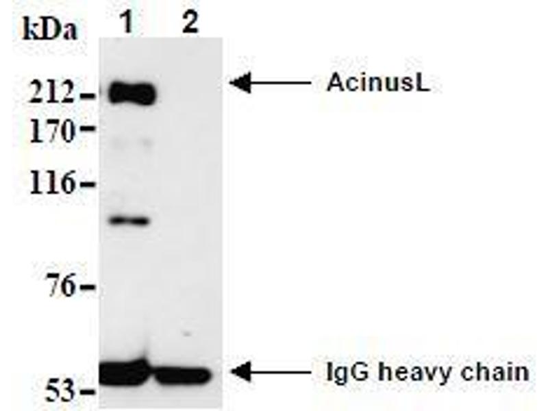 Chromatin condensation and nuclear fragmentation (CCNF) are hallmarks of apoptosis. CCNF is triggered by the activation of members of the caspase family, caspase-activated DNase (CAD/DFF40) and several novel proteins including AIF and CIDE. A new inducer of chromatin condensation was recently identified and designated Acinus (Apoptotic Chromatin Condensation Inducer in the Nucleus). The 220 kDa Acinus protein is cleaved by caspase-3 and an additional unknown protease to generate a 17 kDa peptide that which causes chromatin condensation in vitro when added to purified nuclei. Acinus also induces apoptotic chromatin condensation in cells. Three different spliced forms of Acinus have been identified in human and mouse and designated AcinusL, AcinusS, and AcinusS'. Acinus is ubiquitously expressed.Synonyms: Apoptotic chromatin condensation inducer in the nucleus, KIAA0670