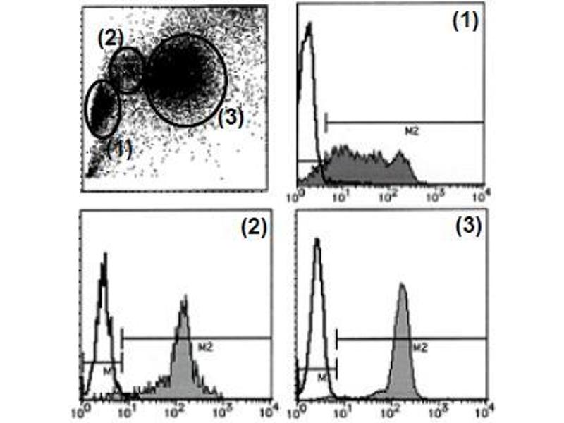 - CD43 antigen is a heavily sialylated single chain membrane glycoprotein with both molecular weight and antigenicity depending on the nature and complexity of the attached O-linked polysaccharides. CD43 is an integral membrane protein with extracellular domain (235 aa), transmembrane domain (23 aa) and intracytoplasmic domain (123 aa). The extracellular domain of CD43 has been shown to react with many ligand such as ICAM-1 (CD54), E-selectin, galectin-1, MHC-I and human serum albumin (HSA). The intracytoplasmic domain, which is highly conserved between species, is constitutively phosphorylated on serine residues. The level of phosphorylation increases after cell activation. This cell surface glycoprotein is also called leukosialin, sialophorin or GPL115. A soluble form of CD43 is also present in human serum. Thymocytes, CD4+ T lymphocytes and monocytes express more of a 115 kDa CD43 isoform, whereas a 130 kDa isoform is found mostly on activated CD4+ T cells, CD8+ resting and activated T cells, neutrophils, platelets and B cells. CD43 plays a role in the regulation of lymphoid cell adhesion, cellular maturation and activation although the nature of this participation remains controversial. For example, the structural characteristics of the CD43 extracellular domain indicate that this molecule has both adhesive and anti-adhesive properties. O-glycosylated chains of CD43 such as a sialyl Lewis X (sLex) epitope, a ligand for both P- and E-selectin, potentiate binding to lectin-like molecules. However, the adhesion molecule function for CD43 is counteracted by the presence of negatively charged sialic acid residues on its extracellular domain. In addition to the strong structural evidence for the involvement of CD43 in cell interactions, experimental data suggest contradictive role for CD43 in regulating cell contacts.Synonyms: Galactoglycoprotein, Leukocyte sialoglycoprotein, SPN, Sialophorin