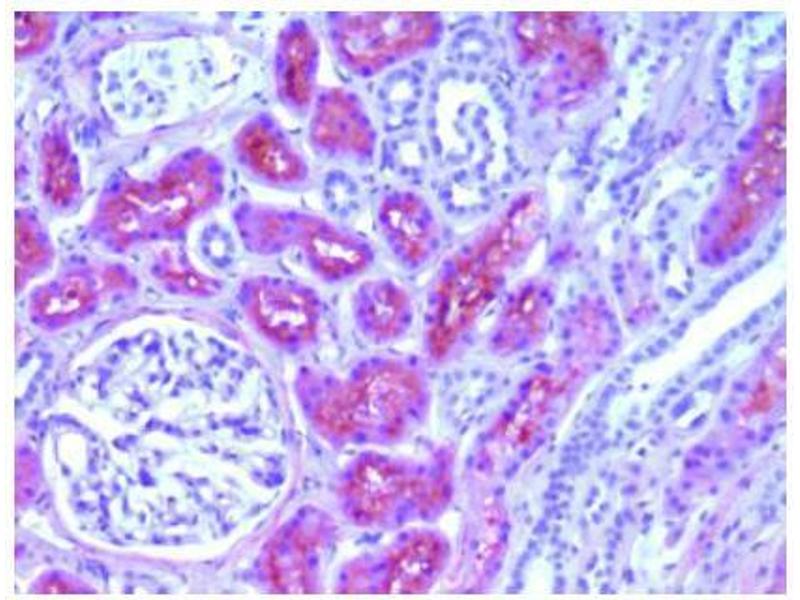 - The L-FABP protein is derived from the human FABP1 gene. FABPs are small intracellular proteins (~13-14 kDa) with a high degree of tissue specificity that bind long chain fatty acids. They are abundantly present in various cell types and play an important role in the intracellular utilization of fatty acids, transport and metabolism. There are at least nine distinct types of FABP, each showing a specific pattern of tissue expression. Due to its small size, FABP leaks rapidly out of ischemically damaged necrotic cells leading to a rise in serum levels. Ischemically damaged tissues are characterized histologically by absence (or low presence) of FABP facilitating recognition of such areas. L-FABP is localized in the liver, kidney and intestinal epithelium.Synonyms: FABPL, Fatty acid-binding protein 1, L-FABP, Liver-type fatty acid-binding protein