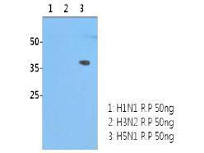 H5N1 is a subtype of the species Influenza A virus of the Influenzavirus A genus of the Orthomyxoviridae family. It consists of single-stranded eight-segment negative-sense genomic RNAs, helical viral ribonucleoprotein (RNP) complexes (RNA segments NP, PB2, PB1 and PA), three viral envelope proteins (hemagglutinin [HA], neuraminidase [NA], and M2 ion channel), and a maxtir (M1) protein. Influenza A viruses are further classified into 16 HA (H1-H16) and 9 NA (N1-N9) serotypes based on the antigenic characteristics of HA and NA envelope glycoproteins. It is responsible for binding the virus to the cell that is being infected. HA protein has two functions. Firstly, it allows the recognition of target vertebrate cells, accomplished through the binding of these cells' sialic acid-containing receptors. Secondly, once bound it facilitates the entry of the viral genome into the target cells by causing the fusion of host endosomal membrane with the viral membrane.Synonyms: Avian Influenza A H5N1 H5 Hemagglutinin