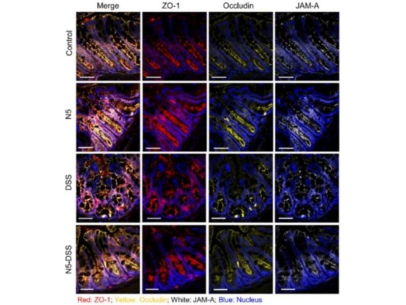 - Occludin is an integral membrane protein specifically associated with tight junctions. These specialized regions of the plasma membrane prevent the diffusion of dissolved molecules between adjacent epithelial cells, seal off body cavities such as intestine or stomach lumen and prevent the diffusion of membrane proteins and glycolipids between the apical and basolateral regions of the plasma membrane. Occludin is localized at tight junctions of both epithelial and endothelial cells and is highly expressed in kidney and has not been detected in testis. On the cytoplasmic surface of occludin, a domain within the C-terminal 150 residues has been shown to bind directly to the well-characterized tight junction protein zona occludens 1 (ZO-1).Synonyms: OCLN