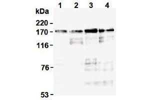 This antibody reacts with Topo IIa and ß. The antibody detects 170 KD of human Topo IIa and 180 KD of human Topo IIß on Western blot with whole cell lysate.