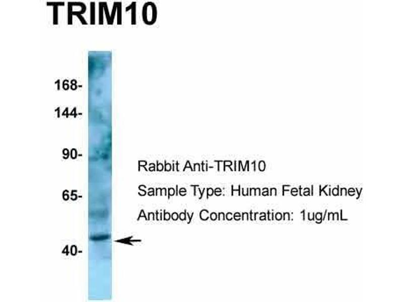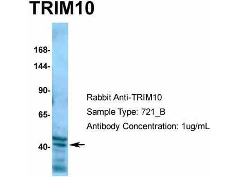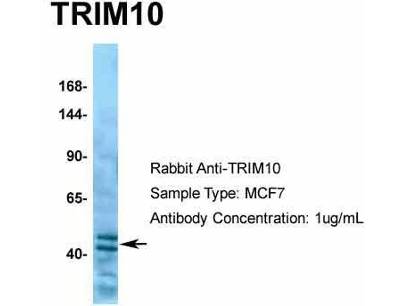 - The immunogen for anti-TRIM10 antibody: synthetic peptide directed towards the C terminal of human TRIM10