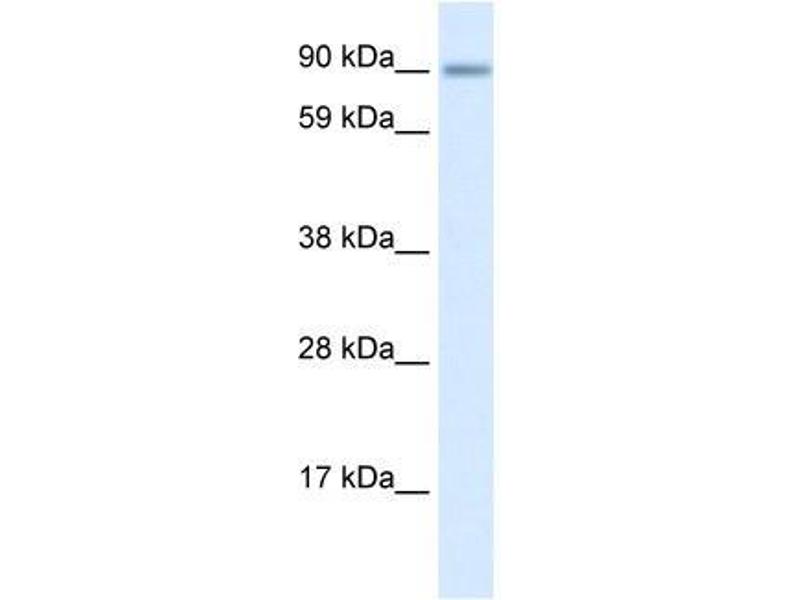 TSHZ3 is a transcriptional regulator involved in developmental processes. It function in association with APBB1, SET and HDAC factors as a transcriptional repressor, that inhibits the expression of CASP4. TSHZ3-mediated transcription repression involves the recruitment of histone deacetylases HDAC1 and HDAC2. TSHZ3 associates with chromatin in a region surrounding the CASP4 transcriptional start site(s) and regulates the development of neurons involved in both respiratory rhythm and airflow control. It promotes maintenance of nucleus ambiguus (nA) motoneurons, which govern upper airway function, and establishes a respiratory rhythm generator (RRG) activity compatible with survival at birth. TSHZ3 ot ZNF537 is involved in the differentiation of the proximal uretic smooth muscle cells during developmental processes and in the up-regulation of myocardin, that directs the expression of smooth muscle cells in the proximal ureter.Synonyms: KIAA1474, TSH3, Teashirt homolog 3, Zinc finger protein 537