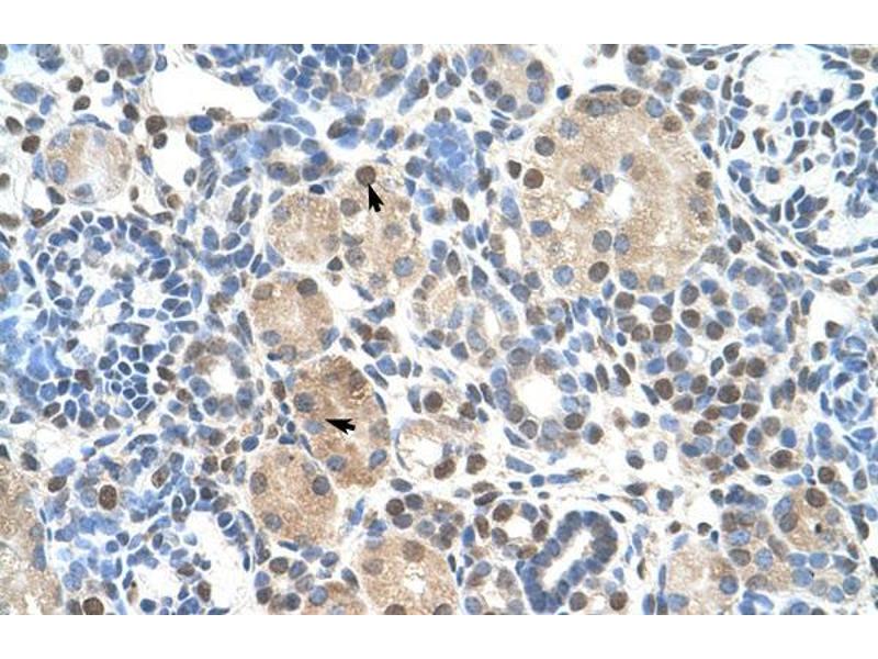 Der Kaninchen Polyklonal anti-ZNF274 Antikörper wird verwendet zum Nachweis von ZNF274 in Proben von Human, Rind (Kuh), Hund, Maus und Ratte. Er wurde validiert für WB und IHC (p).