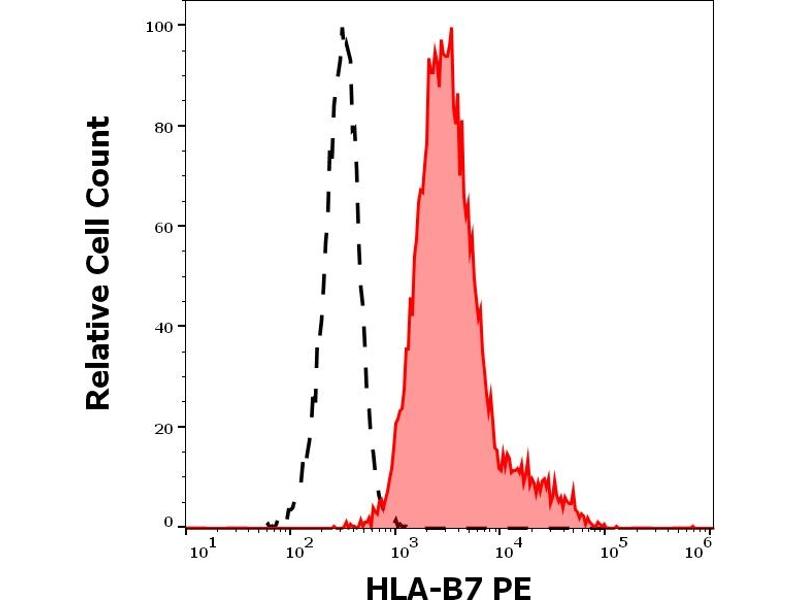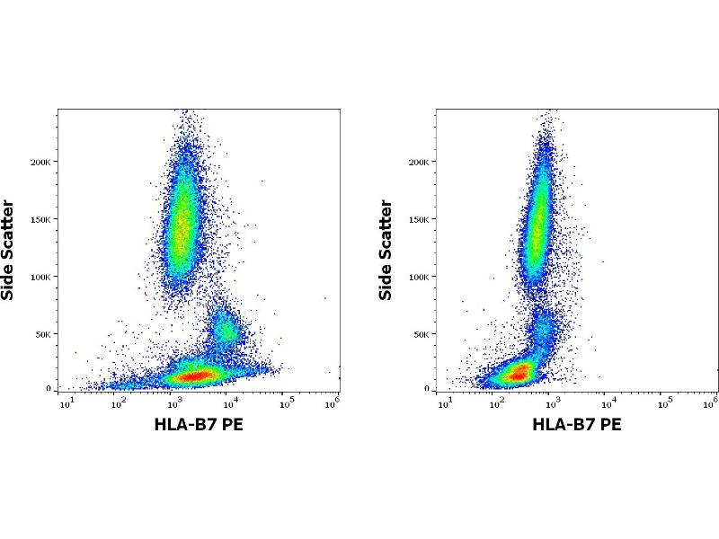 Der PE-konjugierte Maus Monoklonal anti-HLA B7 Antikörper (Klon BB7-1) (ABIN1111104) detektiert spezifisch HLA B7 in FACS.