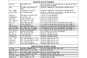 This Monoclonal antibody represents an excellent marker for certain types of carcinomas such as adenocarcinomas of the colon, transitional cell carcinomas of the bladder and Merkel cell tumors of the skin. Very sensitive detection of intestestinal and gastric foveolar epithelium, urothelial umbrella cells, Merkel cells of epidermis as well as tumors originating therefrom (e.g. primary and metastatic colorectal carcinoma). Adenocarcinomas of breast, lung, endometrium and ovary (non-mucinous) as well as neuroendocrine tumors of the lung are essentially negative. Polypeptide Recognized: Protein IT (keratin K20, Mr 46 000, also designated Cytokeratin 20). Tested Reactivities on Cultured Cell Lines: HT-29, LoVo, DLD-1, SW 1116, CaCo-2, RT-4.