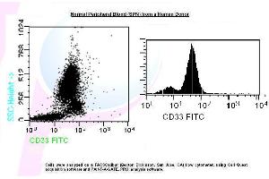 Monoclonal Mouse Anti-Human CD33 FITC is recommended for use in flow cytometry for identification of myeloid progenitors and mast cells.