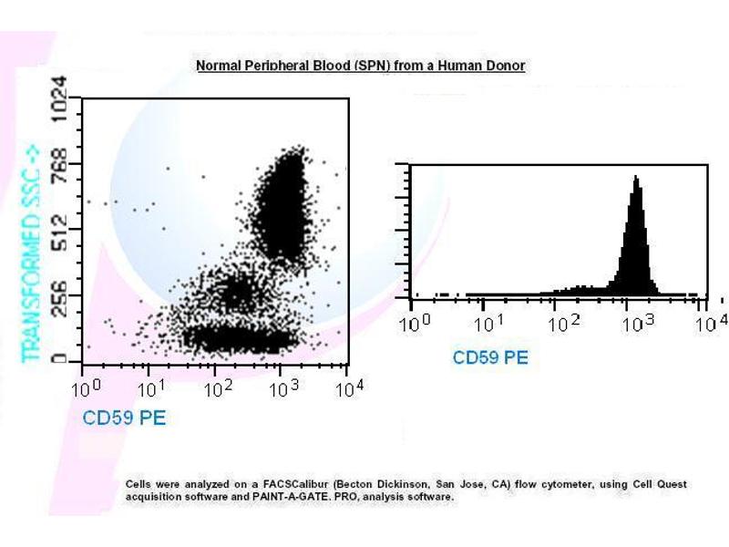 - Mouse Monoclonal Anti-Human CD59 PE is recommended for use in flow cytometry for enumerates CD59+ lymphocytes in human peripheral blood by flow cytometric methods.