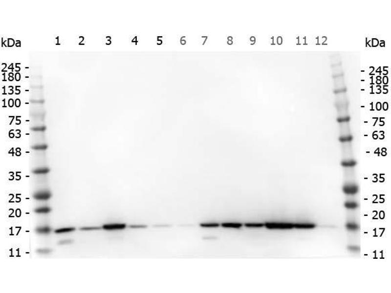 Application Note: Histone H3 antibody has been tested for use in ELISA, IHC, and western blot. For western blots expect a band of approximately 15.4 kDa in size corresponding to the Histone 3 protein. Specific conditions for reactivity should be optimized by the end user.