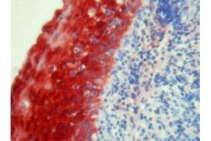 ELISA. Immunohistochemistry on Frozen Sections: 1-2 μg/mL (1/100-1/200). Immunohistochemistry on Paraffin Sections: 5-10 μg/mL (1/20-1/50) (No pretreatment forantigen retrieval necessary). Microwave treatment in 0.01M Citrate, pH 6.0, may enhance the reactivity. Suggested Positive Control: Human tonsil. Has been described to work in Dot Blots and not in FACS. Other applications not tested. Optimal dilutions are dependent on conditions and should be determined by the user.