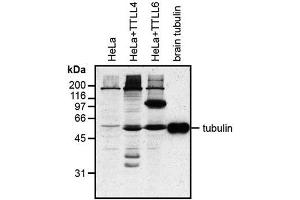 - Recognizes the posttranslational modification (poly)glutamylation on proteins. Reacts with polyglutamylated alpha- and beta-tubulin.