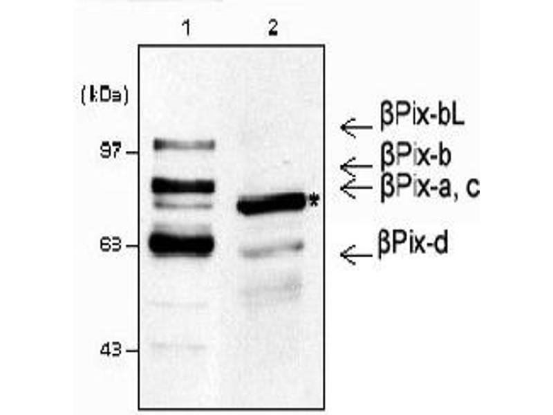 Beta-PIX acts as a RAC1 guanine nucleotide exchange factor (GEF) and can induce membrane ruffling. It interacts with PAK kinases through the SH3 domain. It may function as a positive regulator of apoptosis and is involved in cell migration. It is expressed with high levels in the central nervous system.