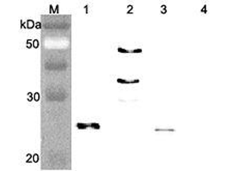 - Recognizes human and mouse FGF-21. Detects a band of ~25 kDa by Western blot.