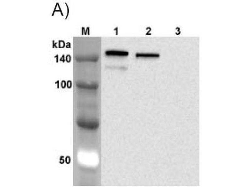 - Recognizes human Jagged-1. Detects a band of ~180 kDa by Western blot.
