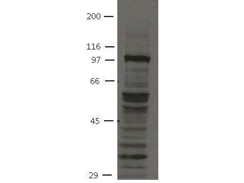 - Optimal antibody dilution should be determined by titration, however as a guideline try at WB: 1/100. Detects a band of approximately 105 kDa (predicted molecular weight: 88 kDa).