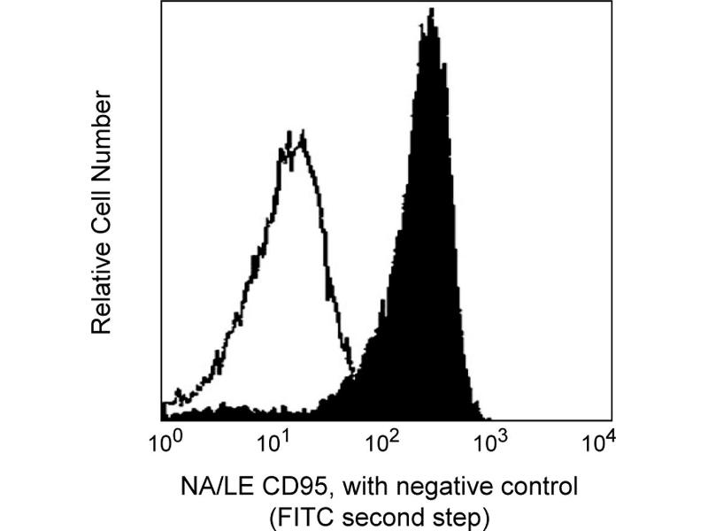 Fas antigen, CD95, is a 45 kDa cell-surface protein which can mediate apoptosis. It belongs to the TNF (tumor necrosis factor)/NGF receptor family. Expression of Fas has been described in the thymus, liver, heart, lung and ovary. Fas plays an important role in the apoptotic process that takes place during development. Monoclonal antibodies recognizing Fas such as Jo2 have cytolytic activity on cells expressing Fas. The cell death stimulated by Fas antibodies is characteristic of apoptosis and suggests that the lethal effects are a result of interaction of antibody with a functional Fas antigen as opposed to complement-mediated lysis. The Jo2 antibody recognizes mouse Fas. The Jo2 antibody shows cytolytic activity against cell lines expressing mouse Fas by inducing apoptosis. Intraperitoneal injections of Jo2 mAb have been shown to kill mice and induce apoptotic hepatocyte death. Jo2 mAb has been reported to immunoprecipitate mouse Fas as a 45 kDa band from W4 cells. W4 cells are WR19L mouse lymphoma cells transformed with mouse Fas. The difference between the observed MW of Fas and that deduced from its amino acid sequence (Mr 34,971) may be due to glycosylation. Synonyms: Fas/APO-1