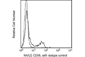 The B159 monoclonal antibody specifically reacts with CD56. CD56 is a heavily glycosylated protein that is present on a subpopulation of peripheral blood large granular lymphocytes which demonstrate natural killer activity. CD56 is also expressed on a subset of T cells but is not expressed on myeloid cells, erythrocytes or B cells. This antigen is a pan-NK-cell marker. CD56 is virtually identical to an isoform of the neutral cell adhesion molecule (NCAM), a structure mediating homotypic and heterotypic cell-cell interactions.