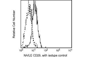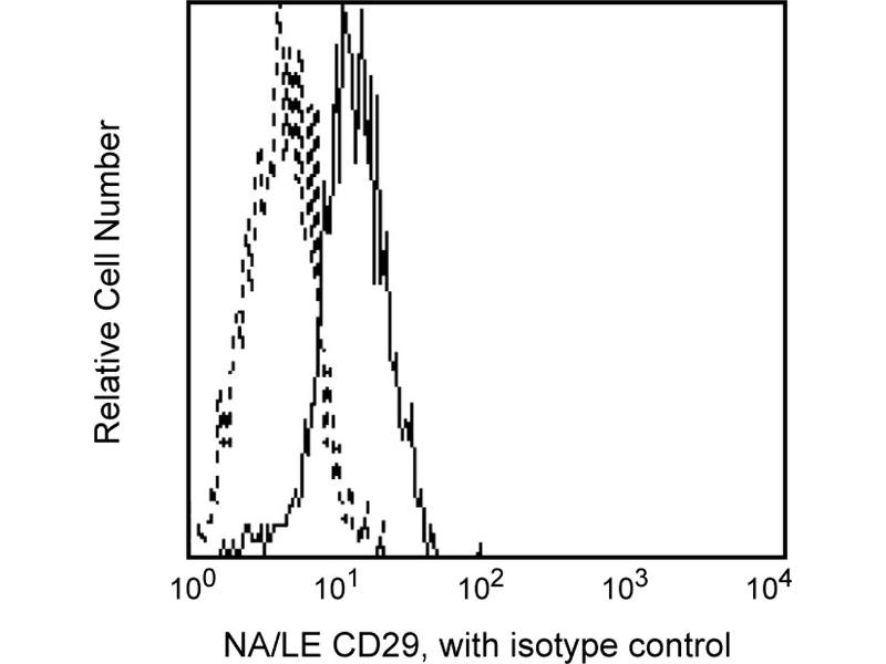 Reacts with the 130 kDa integrin beta1 subunit, CD29, that is expressed following cell activation as a heterodimeric complex with one of nine distinct alpha subunits, comprising the very late activation antigen (VLA) subfamily of adhesion receptors. The HUTS-21 beta1 epitope is weakly expressed on resting lymphocytes, but is upregulated by TPA, Ca++ ionophore, or another CD29 antibody, TS2/16. This upregulation is Mn++ dependent and not supported by other divalent cations such as Ca++ and/or Mg++. The VLA receptors have a broad cellular distribution and interact with ligands like VCAm-1 and MAdCAM-1 during cell adhesion. They also interact with extra-cellular matrices including collagen, laminin, fibronectin and others. HUTS-21 antibody enhances adherence of TPA-activated lymphocytes to fibronectin.