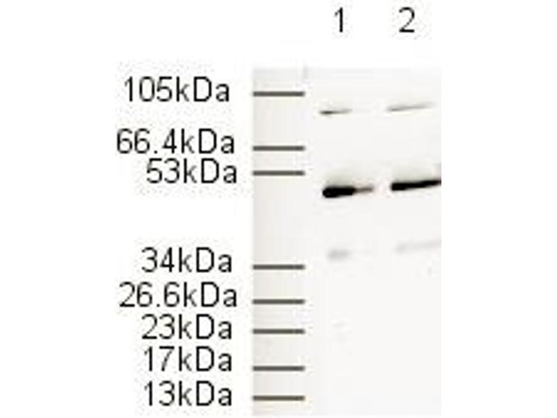 Species reactivity (expected):A BLAST analysis was used to suggest reactivity with this protein from Mouse, Rat, Bovine, Dog, Golden Hamster and Boar sources based on 100 % homology for the immunogen sequence. Cross reactivity with PPAR alpha protein from Human, Chimpanzee and Rhesus Monkey may also occur as this sequence shows 88 % homology (16/18 identities) with the protein from these sources.