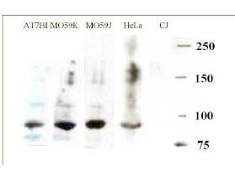 - This antibody detects a band of the appropriate size in a number of different cell lines. However, it does not detect a band in cell lines that do not express ARTEMIS, such as the cell line CJ and in an hTERT line.