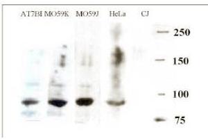 This antibody has been tested for use in ELISA (1: 10,000-1: 20,000), Immunohistochemistry(1: 1,000) and Western blotting (1: 500-1: 2,000). Reactivity in other immunoassays isunknown. This antibody detects a band of approximately 90 kDa (predicted molecular weight: 78 kDa).