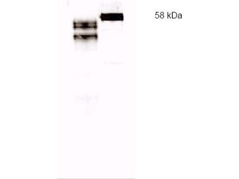 This purified polyclonal antibody reacts with human fetuin by ELISA (1/40,000-1/200,000)and Western blot (1/10,000-1/20,000). Although not tested, this antibody is likelyfunctional in Immunohistochemistry and Immunoprecipitation. A doublet band or slightlylower molecular weight band (see Figure 1, lane 1) may be visible by western blot due toproteolytic processing, variable glycosylation and/or phosphorylation. Proteolytic processing may include the removal of a 40 amino acid residue bridgingpeptide from the A and B chains of fetuin in vivo. Other applications not tested. Optimal dilutions are dependent on conditions and should be determined by the user.