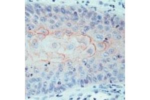 - CD44 variant4 is a cell surface glycoprotein expressed on lymphocytes, monocytes, and granulocytes. The CD44 Molecule belongs to a family of cellular adhesion molecule found on a wide range of normal and malignant cells in epithelial, mesothelial and haematopoietic tissues. CD44 is a single gene with 20 exons, of which 10 are normally expressed to encode the basic CD44 (H-CAM) molecule. The additional 10 exons (v1 to v10) are only expressed by alternative splicing of the nuclear RNA. The expression of specific cell adhesion molecule CD44 splice variants has been shown to be associated with metastasis and poor prognosis in certain human malignancies, such as breast cancer.Synonyms: CD44, CDw44, ECMR-III, Epican, Extracellular matrix receptor-III, GP90 lymphocyte homing/adhesion receptor, HUTCH-I, Heparan sulfate proteoglycan, Hermes antigen, Hyaluronate receptor, LHR, MDU2, MDU3, MIC4, PGP-1, Phagocytic glycoprotein I