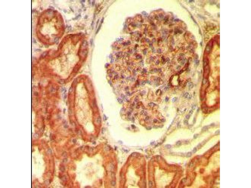 Immunoprecipitation: 1/1000 - 1/10000. Western Blot: 1/1000 - 1/5000. ELISA: 1/1000 - 1/20000. Immunohistochemistry on frozen and paraffin embedded sections: 1/500 - 1/1000. This product requires antigen retrieval using heat treatment prior to staining of paraffin sections. Sodium citrate buffer pH 6.0 is recommended for this purpose. Recommended positive control tissue: Kidney. Other applications not tested. Optimal dilutions are dependent on conditions and should be determined by the user.