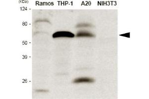 IRF-5 is a member of IRF family, which plays a critical role in the regulation of genes induced by viral infection, immunostimulation and cell growth regulation. The expression of IRF-5 is limited to lymphoid organs, dendritic cells, and peripheral blood lymphocytes, but is not expressed in numerous leukemia and lymphoma cell lines. Three IRFs(IRF-3, IRF-5, IRF-7) function as direct transducers of virus-mediated signaling and play a critical role in the expression of type I interferon genes and some chemokines.Synonyms: IRF-5, Interferon regulatory factor 5