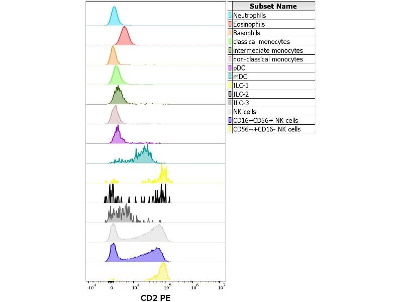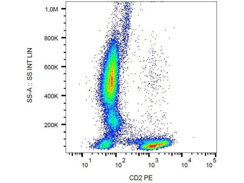 The antibody MEM-65 recognizes a unique extracellular epitope of CD2, a 50 kDa glycoprotein present on the human peripheral blood T-lymphocytes and NK cells, also expressed by all thymocytes.