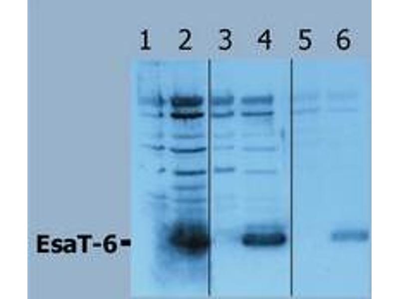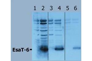 The rabbit polyclonal antibody to EsaT-6 recognizes the EsaT-6 (Rv3875) protein of Mycobacterium tuberculosis and Mycobacterium bovis.