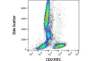The antibody LT2 reacts with an extracellular epitope of CD2, a 50 kDa glycoprotein present on the human peripheral blood T lymphocytes and NK cells, also expressed by all thymocytes.