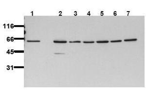 Western Blot: 1 μg/mL for HRPO/ECL detection. Recommended blocking buffer: Casein/Tween 20 based blocking and blot incubationbuffer. ELISA: 0.1 μg/mL. Immunohistochemistry. Other applications not tested. Optimal dilutions are dependent on conditions and should be determined by the user.