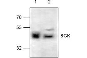 Serum and glucocorticoid-inducible kinase (SGK) is a serine/threonine kinase that is closely related to Akt. SGK is rapidly induced in response to a variety of stimuli, including serum, hormones, and osmotic shock, etc. SGK has been involved in modulating anti-apoptotic and cell cycle regulation, as well as in activating certain potassium, sodium and chloride channels.Synonyms: Serine/threonine-protein kinase Sgk1, Serum/glucocorticoid-regulated kinase 1