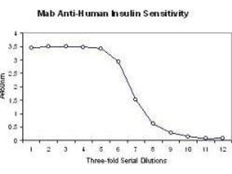 Immunogen: This protein A purified monoclonal antibody was produced by repeated immunizations with purified human insulin coupled to bovine serum albumin (BSA).