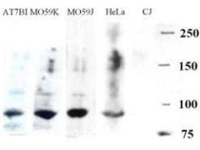 - This antibody detects a band of the appropriate size in a number of different cell lines.
