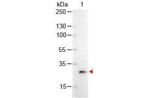 Application Note: Monoclonal anti-GFP is designed to detect enhanced GFP and GFP containing recombinant proteins. This antibody was tested by western blot and ELISA. It can be used to detect GFP by ELISA (sandwich or capture) for the direct binding of antigen. Biotin conjugated monoclonal anti-GFP is well suited to titrate GFP in a sandwich ELISA in combination with Rockland's polyclonal anti-GFP (600-101-215) as the capture antibody. Only use the monoclonal form for the detection of enhanced or recombinant GFP. Polyclonal anti-GFP detects all variants of GFP tested to date. The biotin conjugated detection antibody is typically used with streptavidin conjugated HRP (code # S000-03) or other streptavidin conjugates. The use of polyclonal anti-GFP results in significant amplification of signal when fluorochrome conjugated polyclonal anti-GFP is used relative to the fluorescence of GFP alone. For immunoblotting use either alkaline phosphatase or peroxidase conjugated anti-GFP to detect GFP or GFP containing proteins on western blots. Optimal titers for applications should be determined by the researcher.