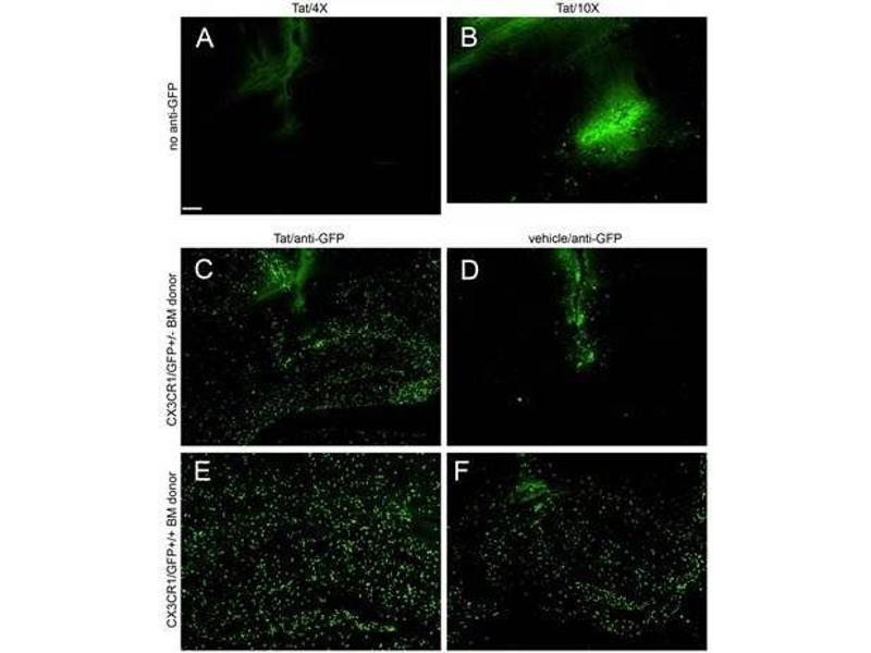 - Anti-GFP was prepared from monospecific antiserum by immunoaffinity chromatography using Green Fluorescent Protein (Aequorea victoria) coupled to agarose beads followed by solid phase adsorption(s) to remove any unwanted reactivities.