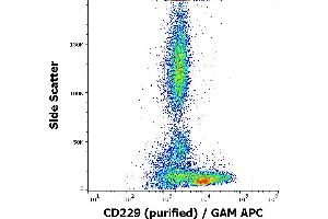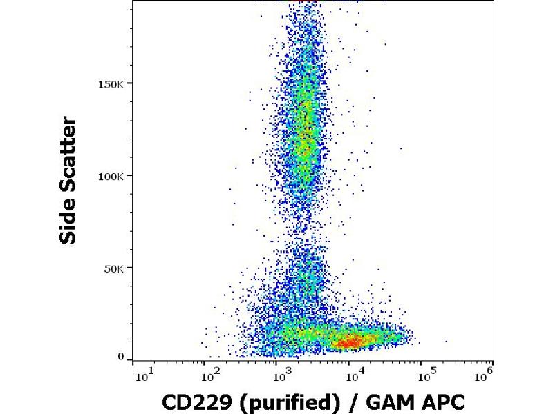 Lymphocyte antigen 9,CD229 (Ly9) is a cell surface receptor of the CD150 family, which includes also e.g. CD48 and CD224. Receptors of this family regulate cytokine production and cytotoxicity of lymphocytes and NK cells. High levels of CD229 are found on T and B cells, where its expression increases during their maturation. It is absent on granulocytes, bone marrow-derived dendritic cells, platelets and erythrocytes. CD229 has been also reported on mouse monocytes and NK cells. CD229 interacts homophilically through its N-terminal domain and localizes to the contact site between T cells and antigen presenting B cells during antigen-dependent immune synapse formation.,SLAMF3, LY9