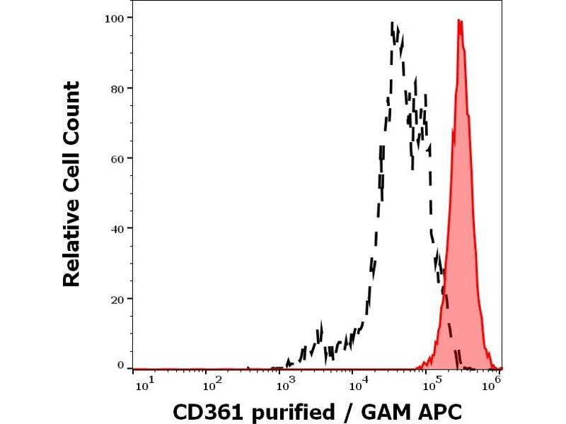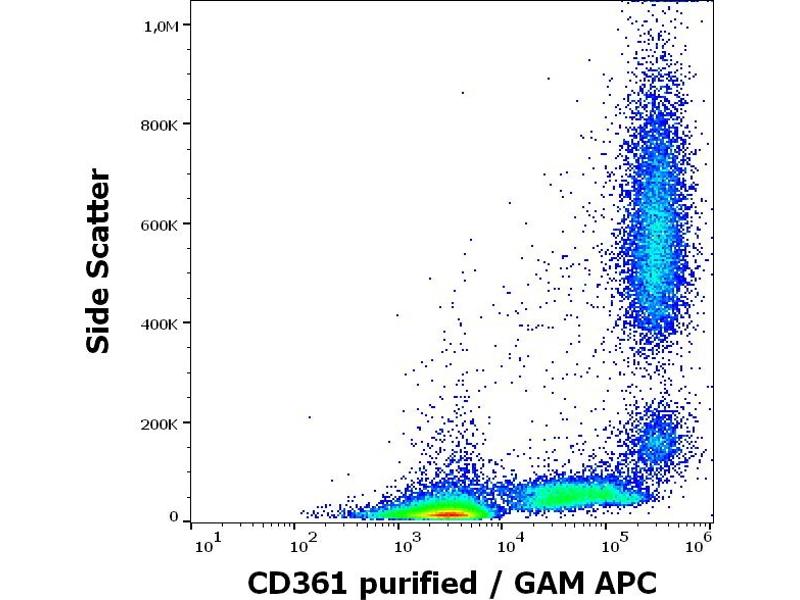 The mouse monoclonal antibody MEM-216 recognizes an extracellular epitope of CD361 / EVI2B, almost uncharacterized type I transmembrane protein with broad leukocyte expression, mostly in myeloid and B cells.