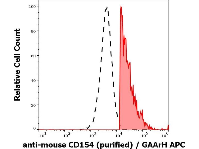 The Armenian hamster monoclonal antibody MR-1 detects an extracellular epitope on murine CD154 / CD40L (CD40-ligand), a 39 kDa cell surface type II glycoprotein expressed predominantly on activated CD4+ lymphocytes.